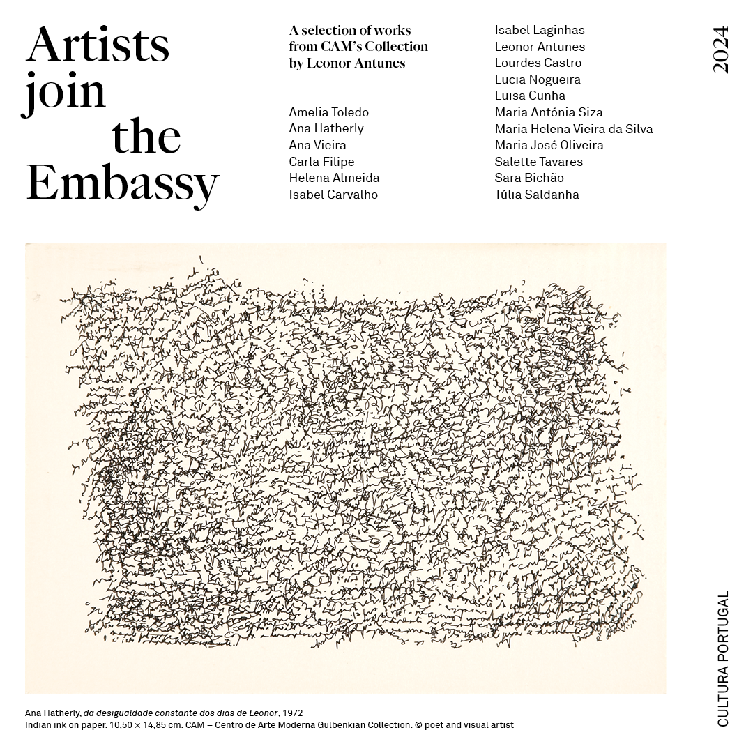 "Um Olhar de Leonor Antunes sobre a Coleção do CAM”, 3rd edition of the "Artists Join the Embassy" project, at the Official Residence, Madrid, Spain.